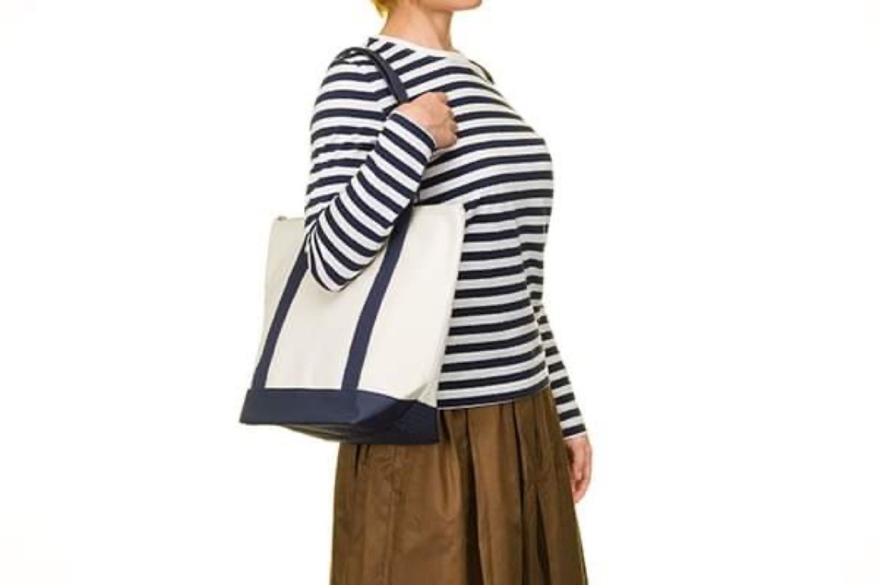 持ち手と底面がバイカラーの配色でアクセントになっているため、ファッション性があり一層目を引き付けます。